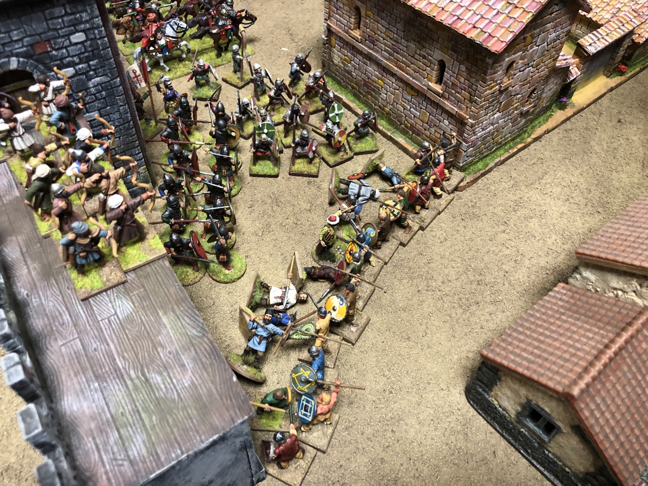 Во-первых в тыл силам ромеев, сосредоточенных на площади у церкви ударили